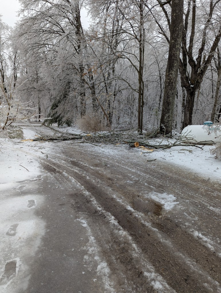 Then, on March 29, 2025, a fierce ice storm hit our area. We had freezing temperatures along with nonstop freezing rain for three solid days and nights. Half way through the first day, electricity for most went out. For us, the power was out for close to 12 days. Other, more rural folks than us, waited up to 3 weeks to see their electricity restored.