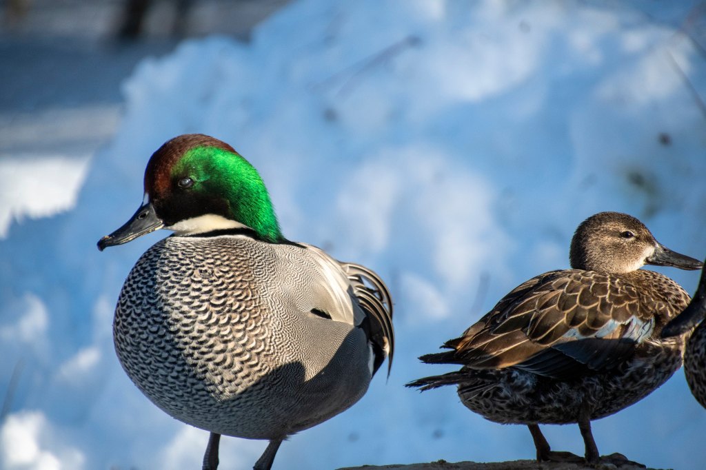 Golden Pheasant males, when in full color, will be a deep red/orange with a bright yellow crest. The females are dull in color, a mottled tan or brown. Both sexes have yellow legs and yellow bills. Full sun can have a bleaching effect upon the bird’s vibrant color, hence it is important to provide shaded areas for captive pheasants. In fact, in their native China, the wild Golden Pheasants spend a great deal of time under the thick cover that the mountains provide.